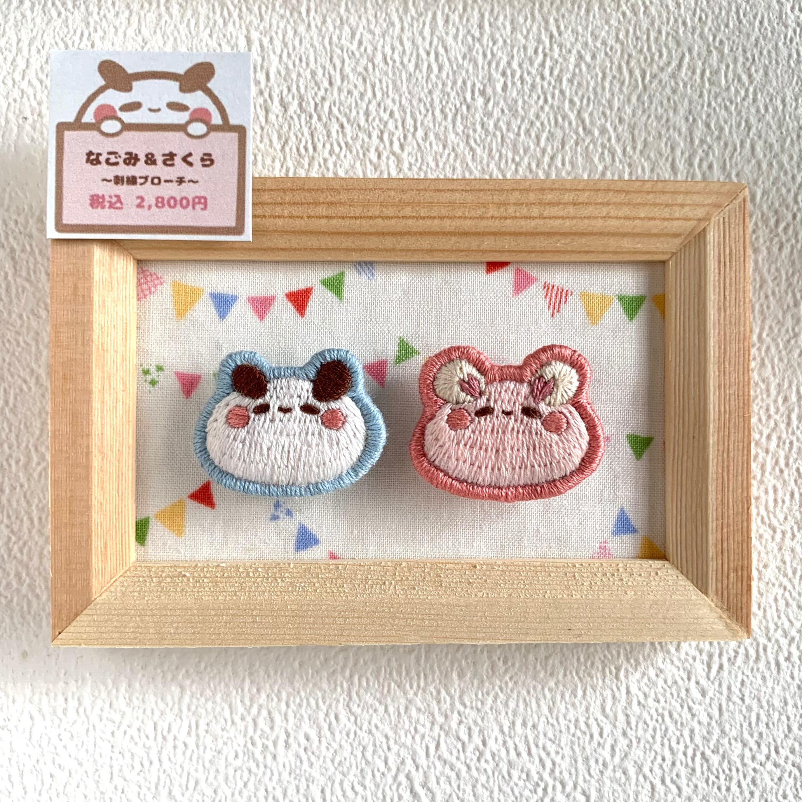 手刺繍ブローチ「なごみ&さくら」