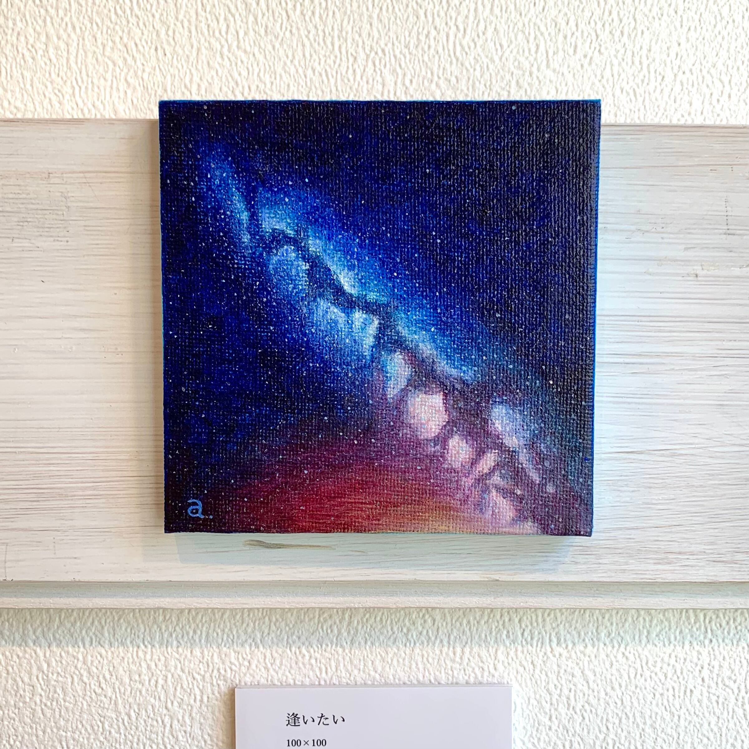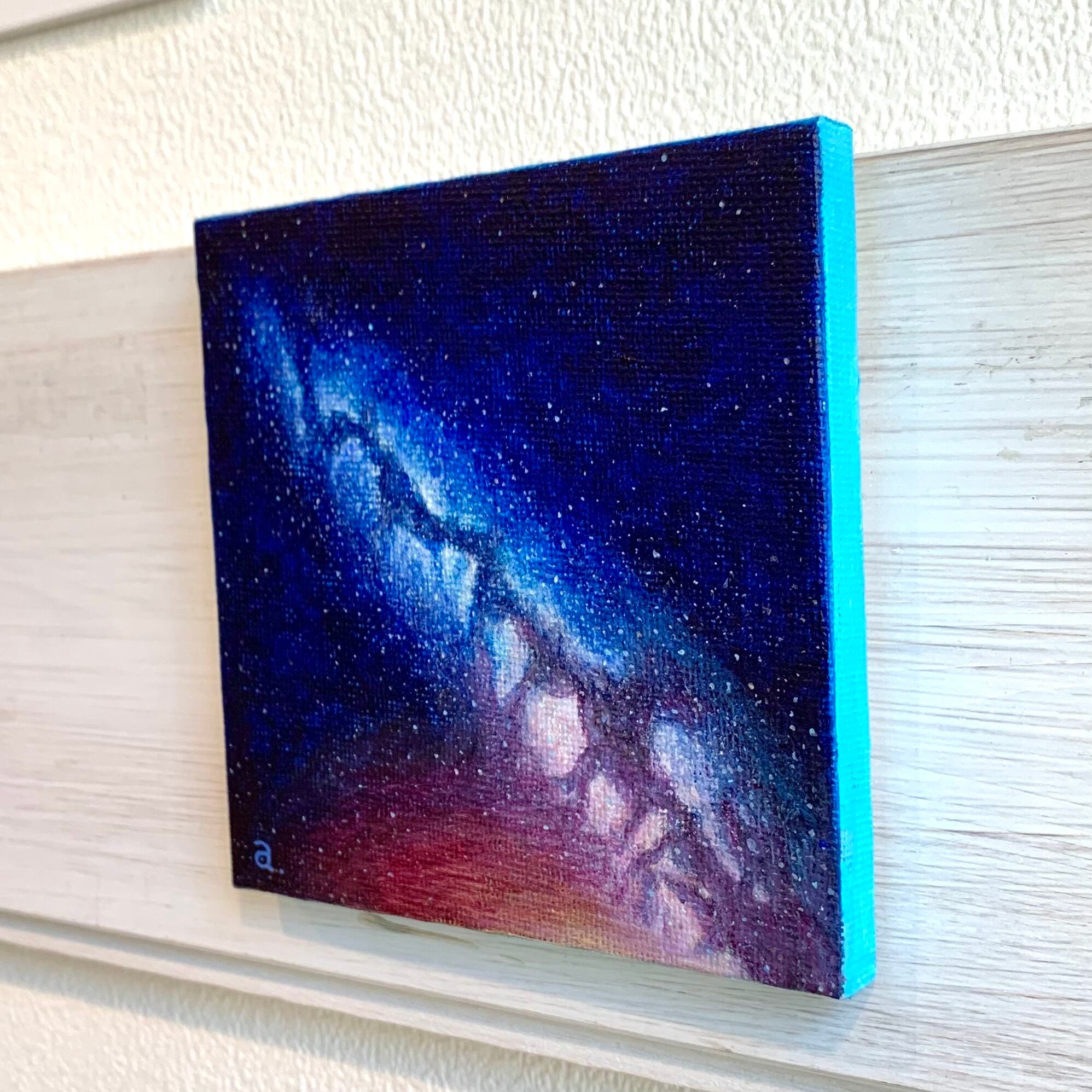 10cm角の小さなキャンバスに描いています。サイドも彩色してありますので、額装せず気軽に飾れます♫